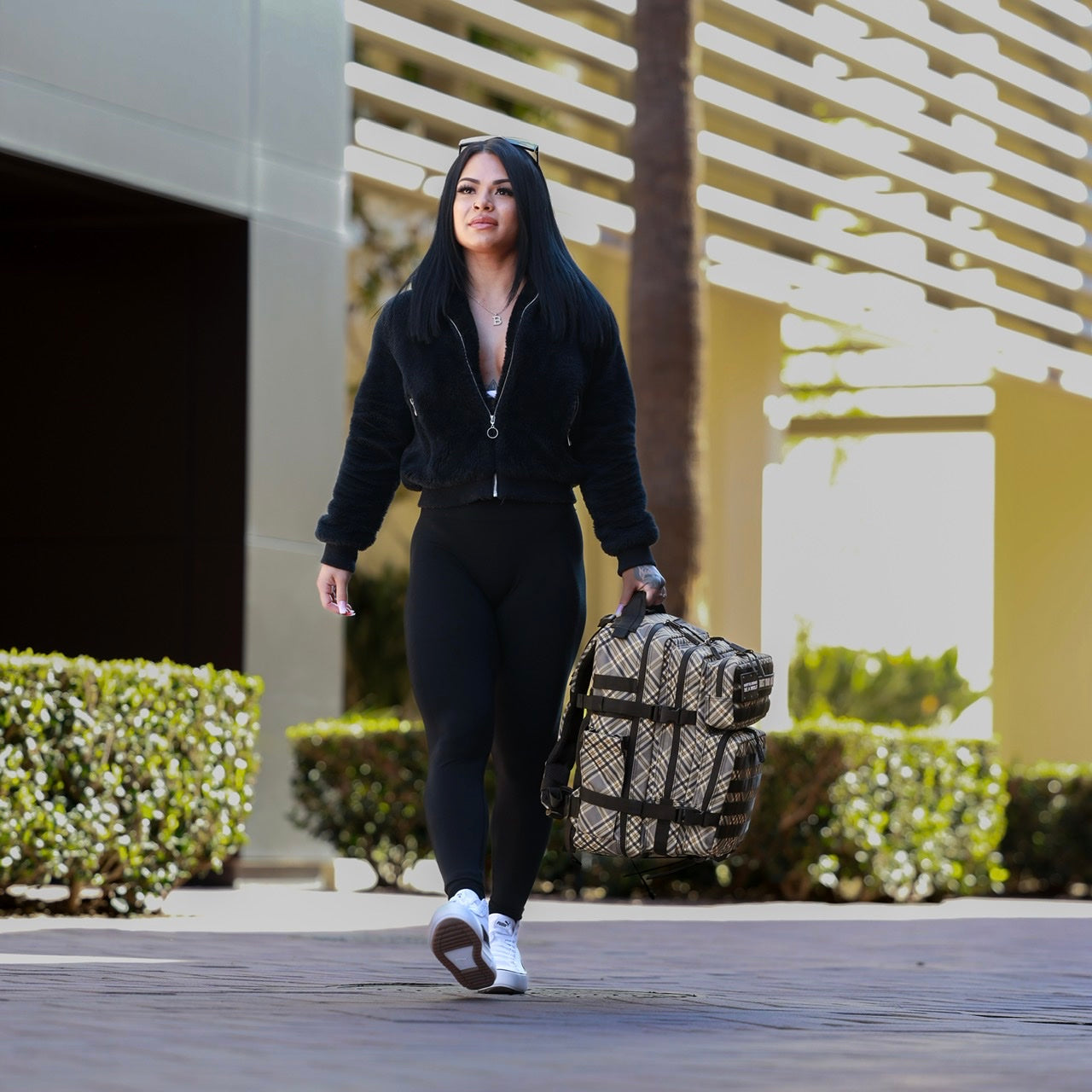 35L Backpack Black Tan Plaid