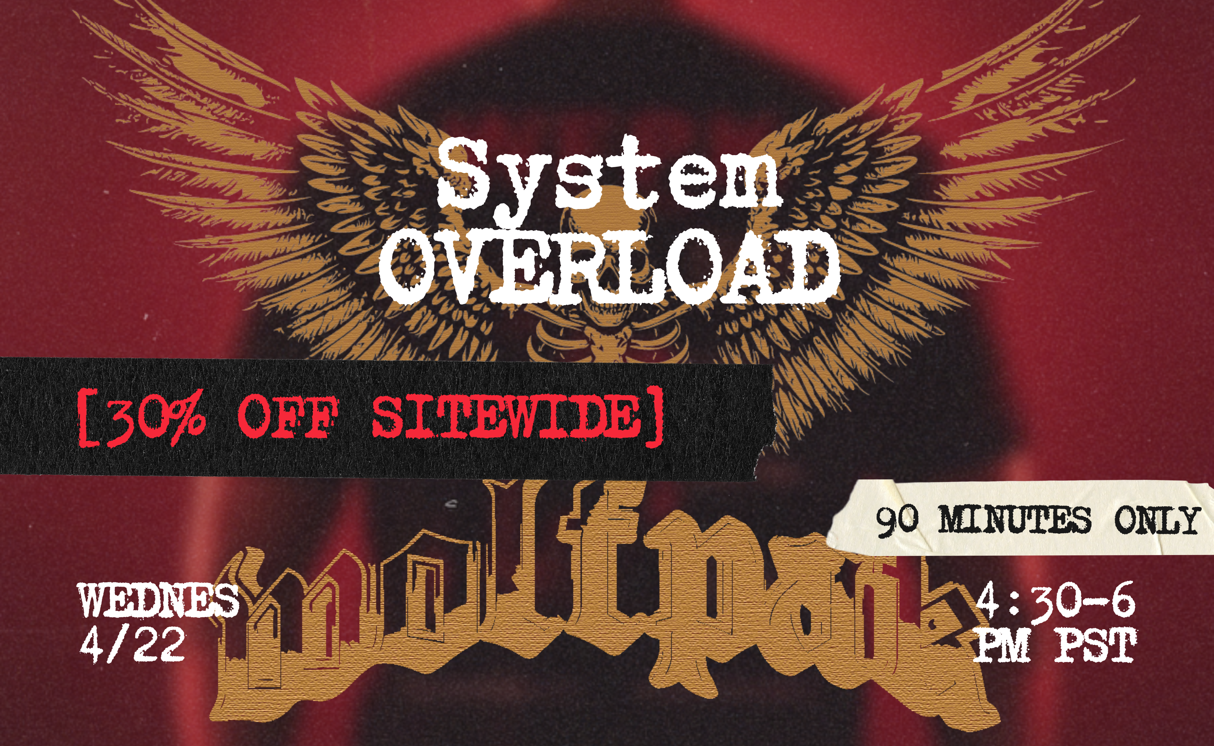 Wednesday 4/22 @ 4:30PM PST: For 90 minutes only, the entire site will be on a 30% off sale.